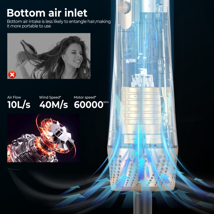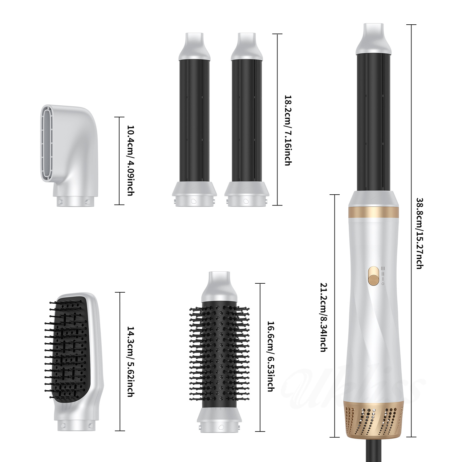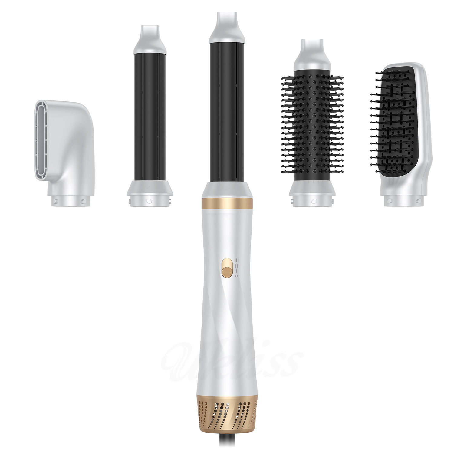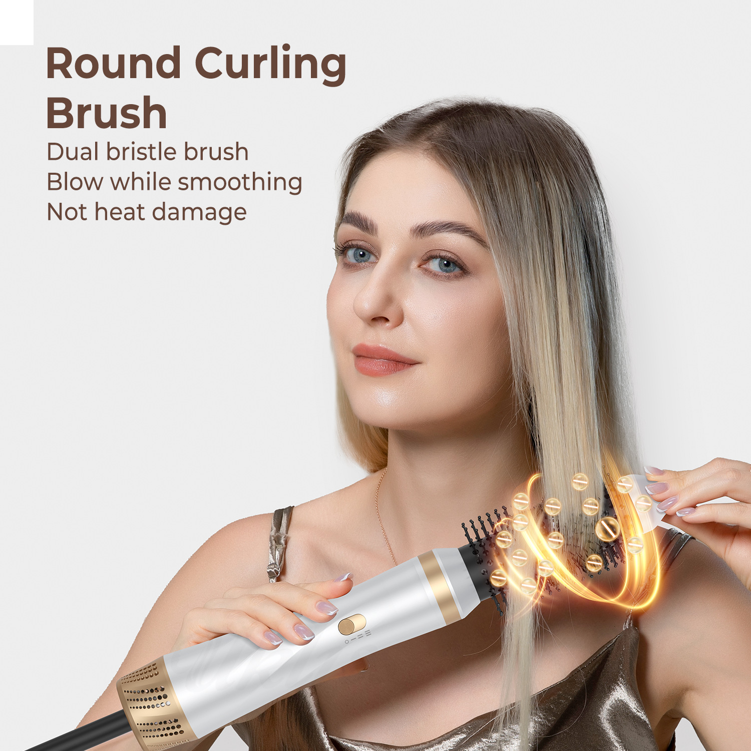 with interchangeable heads for drying, straightening, curling, volumizing & scalp care. Fast, frizz-free styling with ionic tech.