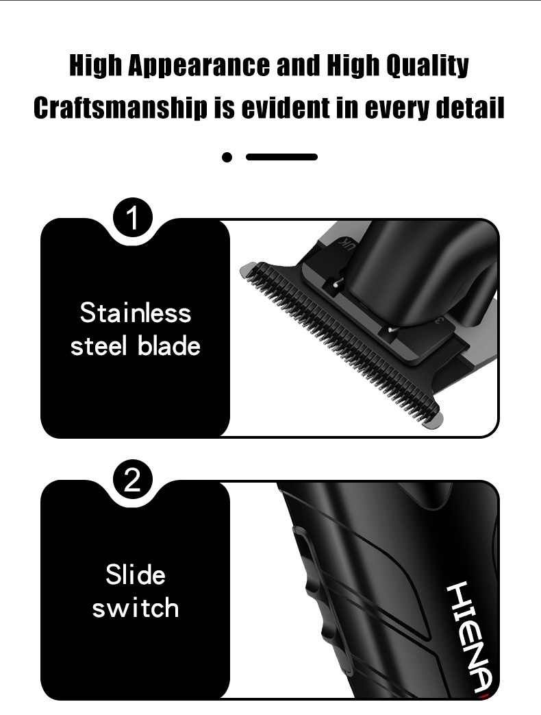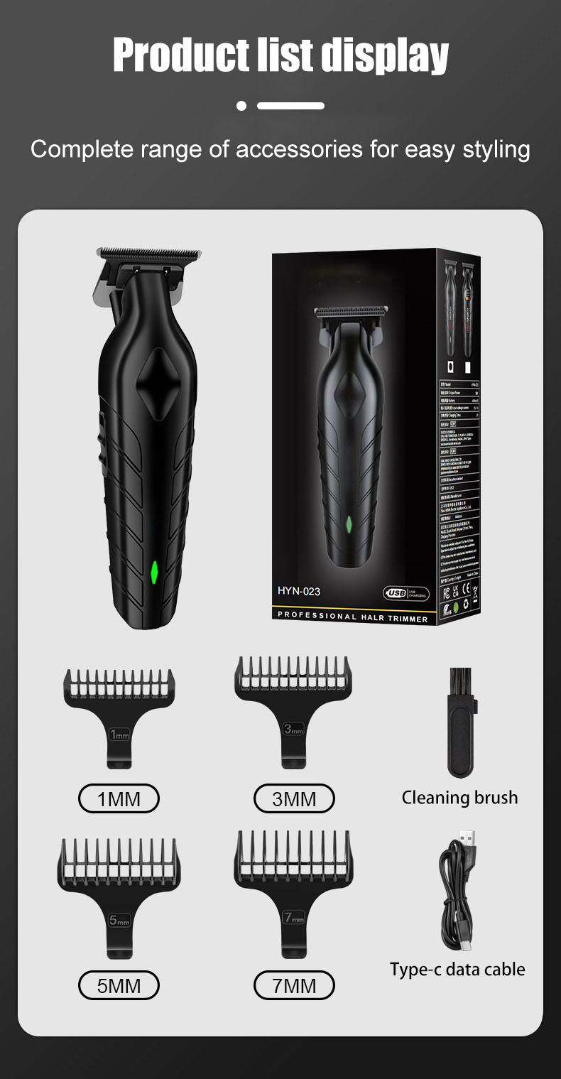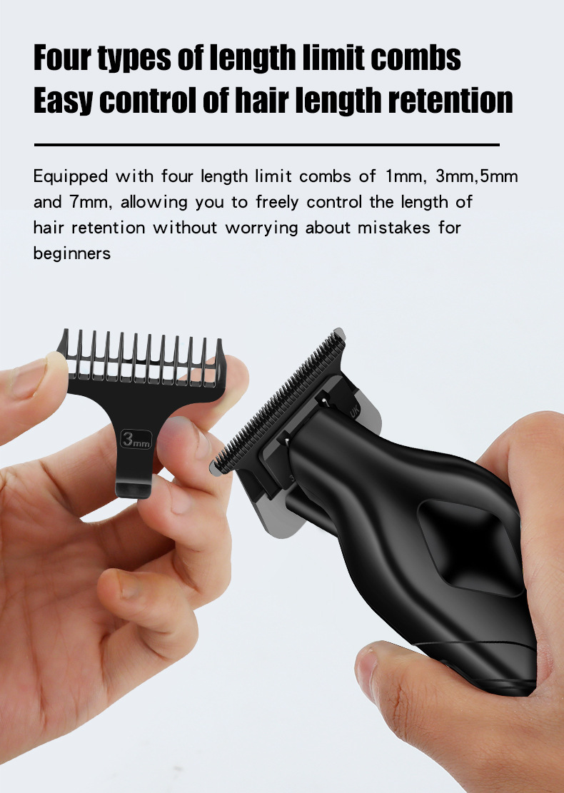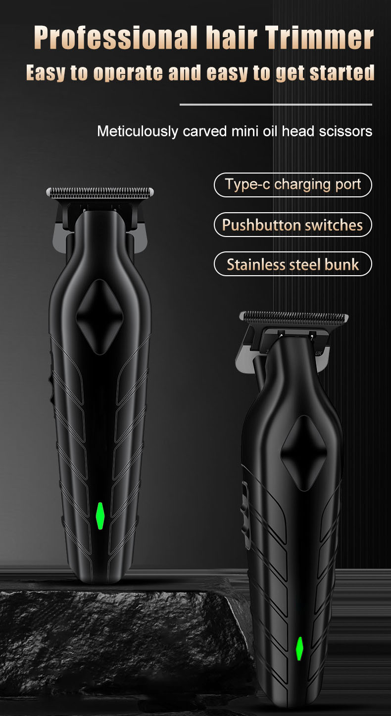 Professional cordless hair clipper for slick back, fades, and carving styles. Features precision steel blade, 600mAh battery for 120 minutes use, 2-hour USB fast charging, and quiet ≤55dB operation. Perfect for oil head and detailed trimming.