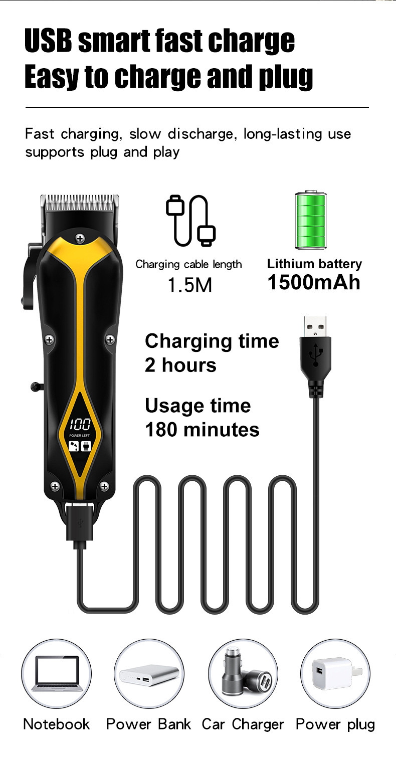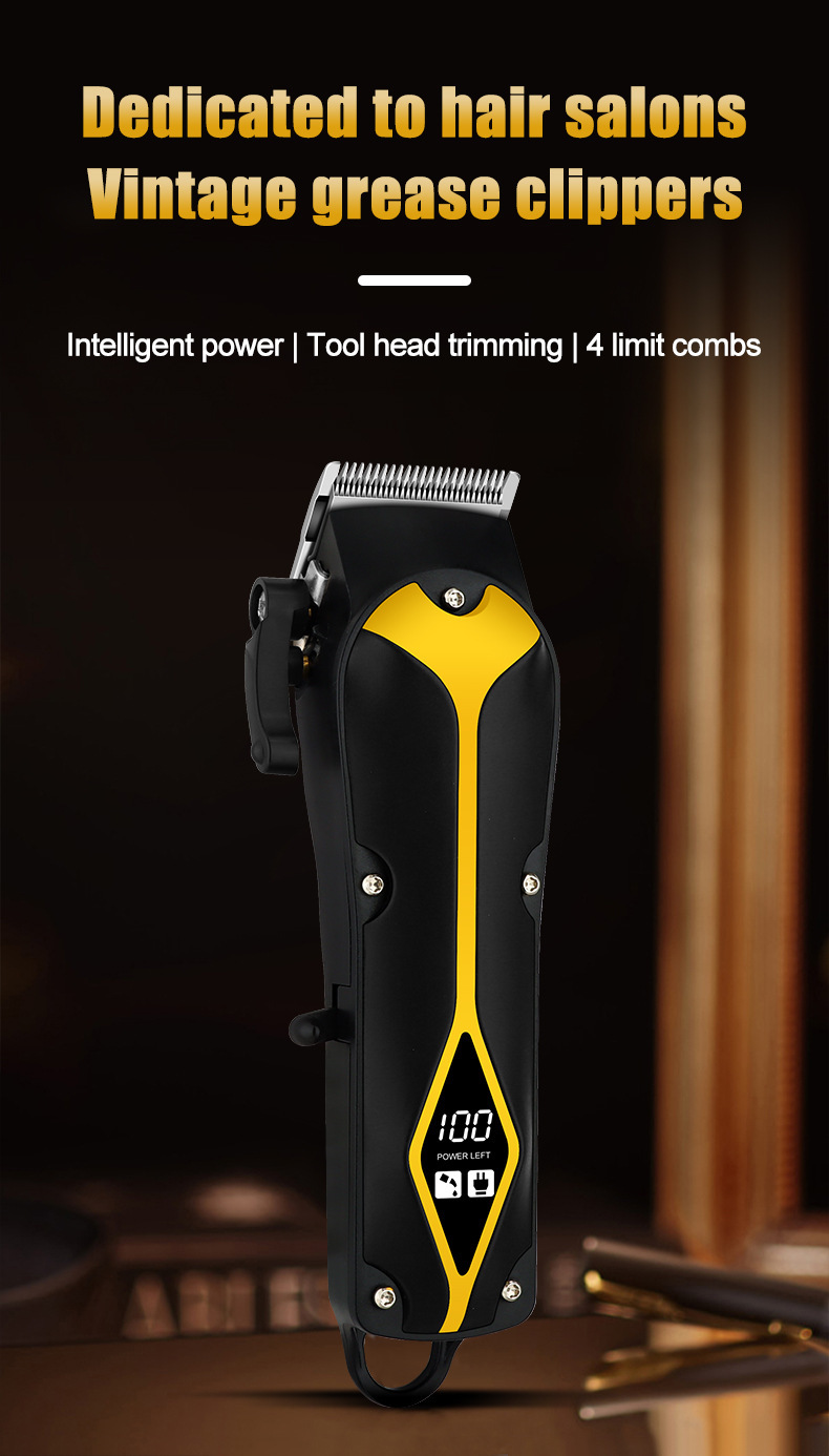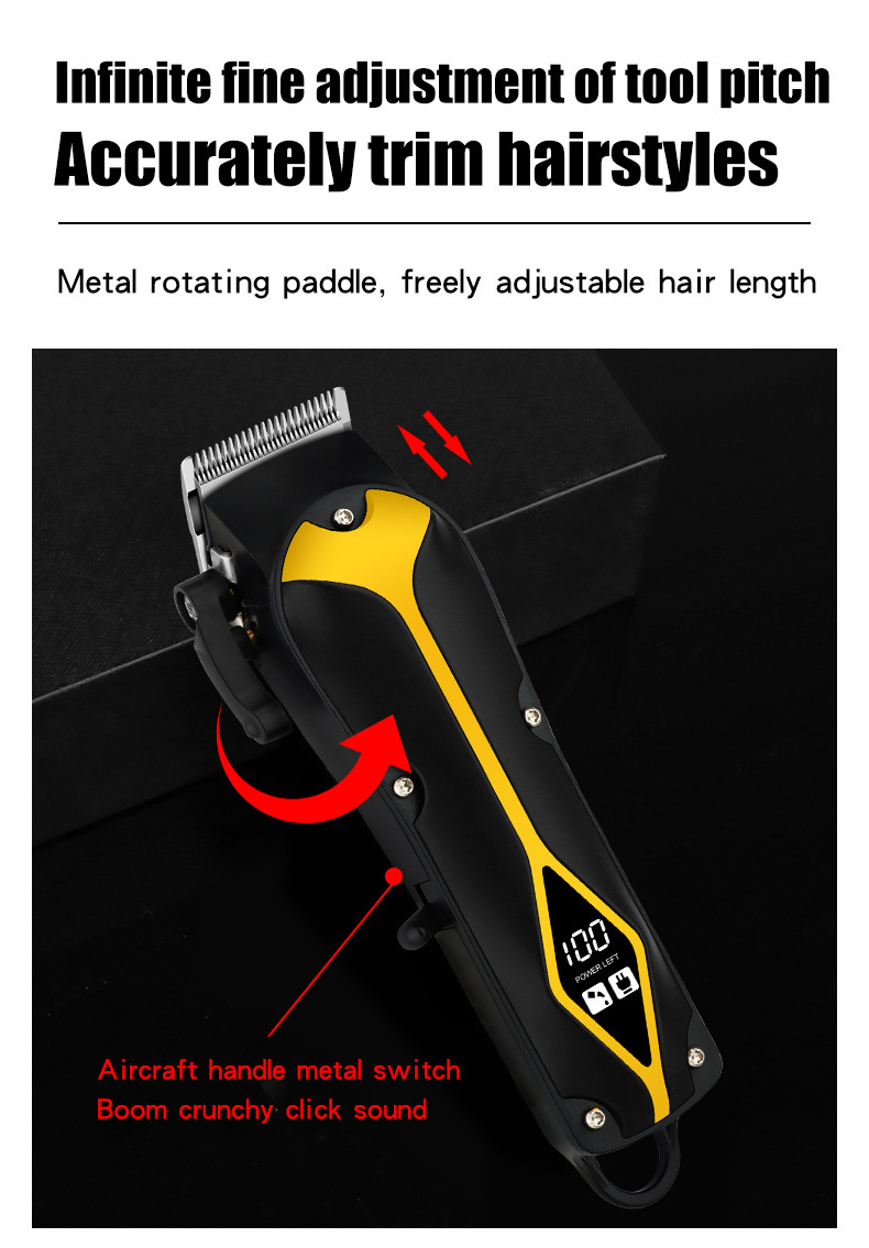 Achieve clean fades, sharp tapers, and classic pompadours with this zero-gap cordless hair clipper. Features a powerful motor, LED display, and long battery life — perfect for barbers and home grooming.
